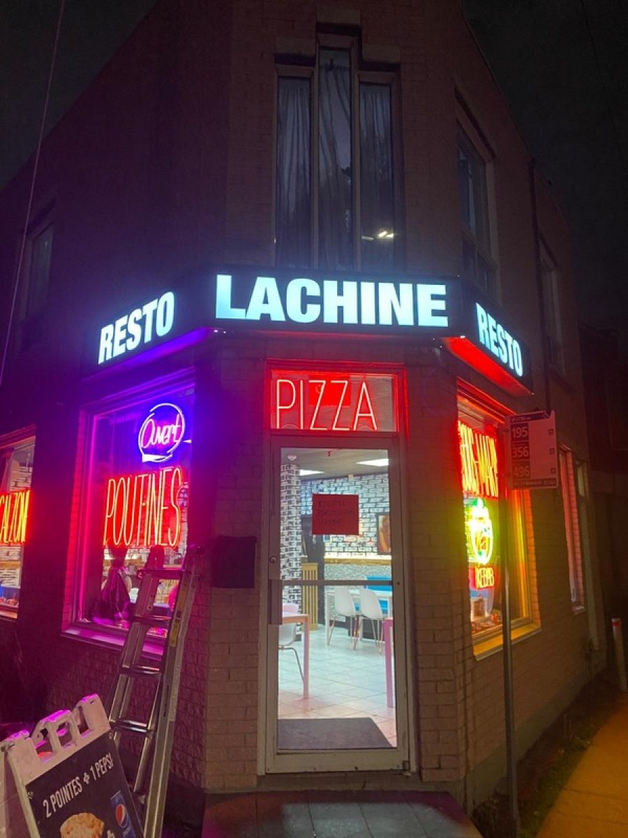 We had the pleasure of designing and creating the exterior signage for Resto Lachine Pizza, a local pizzeria known for its delicious pizza and authentic atmosphere. Our objective was to design a sign that reflects the restaurant's commitment to great food and friendly service while attracting customers with its bold and welcoming appearance.